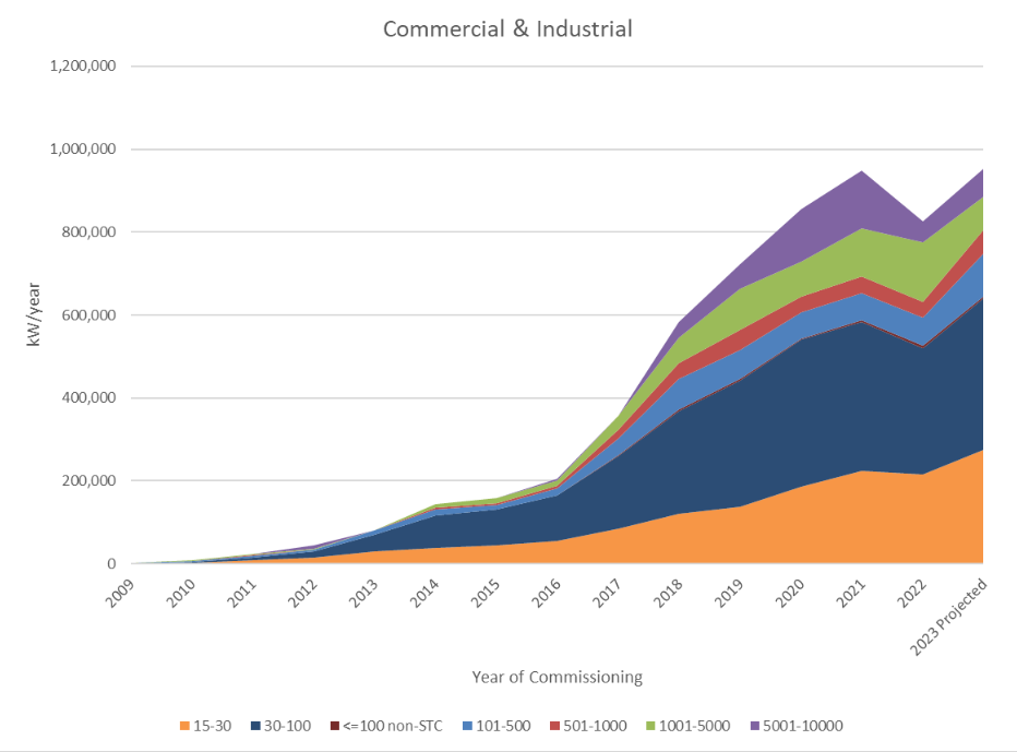 • That led to record volumes of 15-100kW commercial systems in 2023.