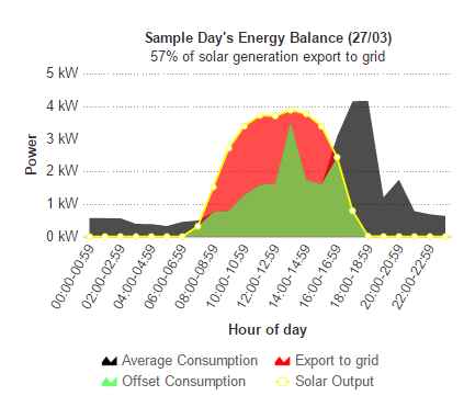 - Average electricity consumption of 30kWh per day (on the high side for a residential property).