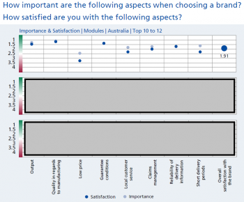 Well, the answer is not so simple. For example, the InstallerMonitor 2021/2022 report published by EUPD Research in cooperation with SunWiz shows that despite retailers’ high levels of awareness of LG’s products – ranking it 3rd – highest overall and highest amongst quality providers (red blurs in left image), LG’s users were dissatisfied with the panels pricing and procurement options (right pane).